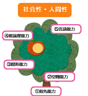 知性は、①指先→空間→図形→数論理→言語→社会性という順番で認識能力を高めながら発達していきます。