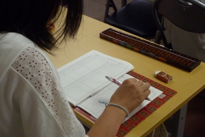 暗算練習は、そろばんの基礎をしっかり学んだ9級試験合格後、8級練習より行います。初めは、紙そろばんを使用しそろばんの珠を浮かべる練習から行います。6級より暗算でのかけ算・わり算を学んだ後に検定を行います。